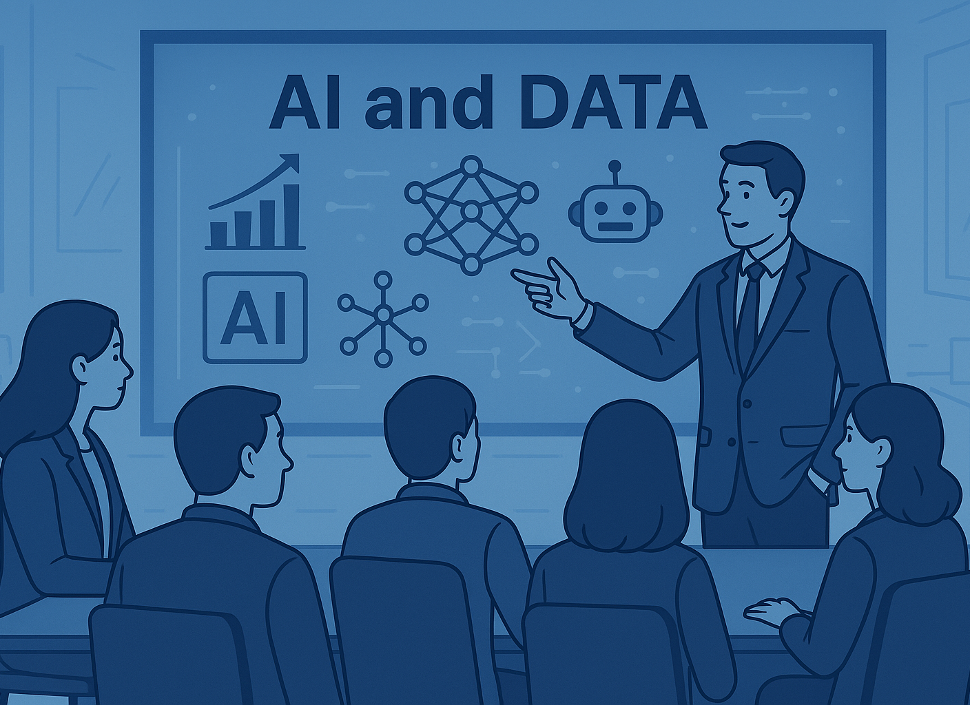 We empower your teams with practical, relevant AI and data training—designed for real business impact. From C-level leadership to operational teams, our programs ensure everyone speaks the same language and is equipped to contribute meaningfully to your transformation journey.